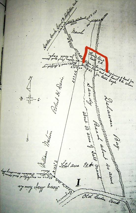 Prior to 1775, the property was originally part of Hart’s lands, an early land grant. Sometime after the Revolutionary War (1776-1783) a tavern and hotel were built at “Thorn Point”, near the original Cedar Creek Outlet and the Mispillion Harbor. It became a local landmark for vessels trading along the Delaware Bay coastline. It was noted on Beer’s 1868 Atlas as a landmark, circled in purple below.